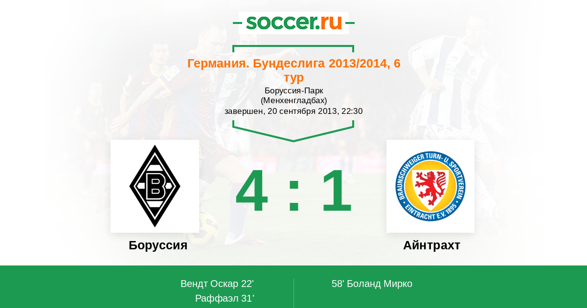 Протокол матча Боруссия против Айнтрахт