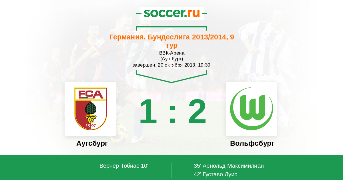 Протокол матча Аугсбург против Вольфсбург