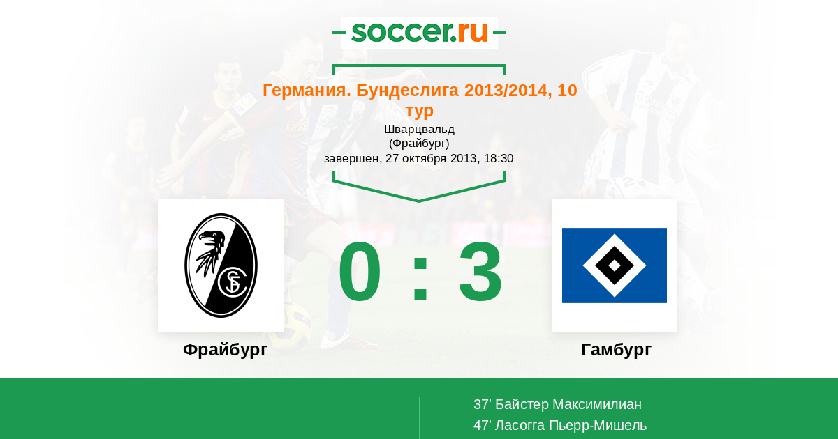 Протокол матча Фрайбург против Гамбург