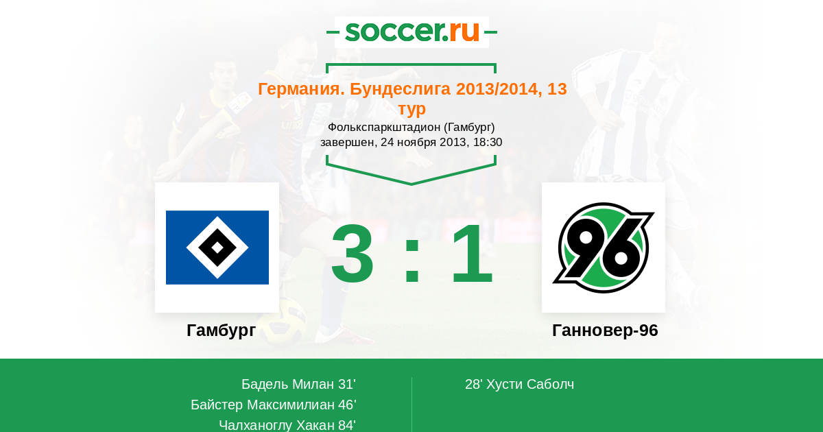Протокол матча Гамбург против Ганновер-96