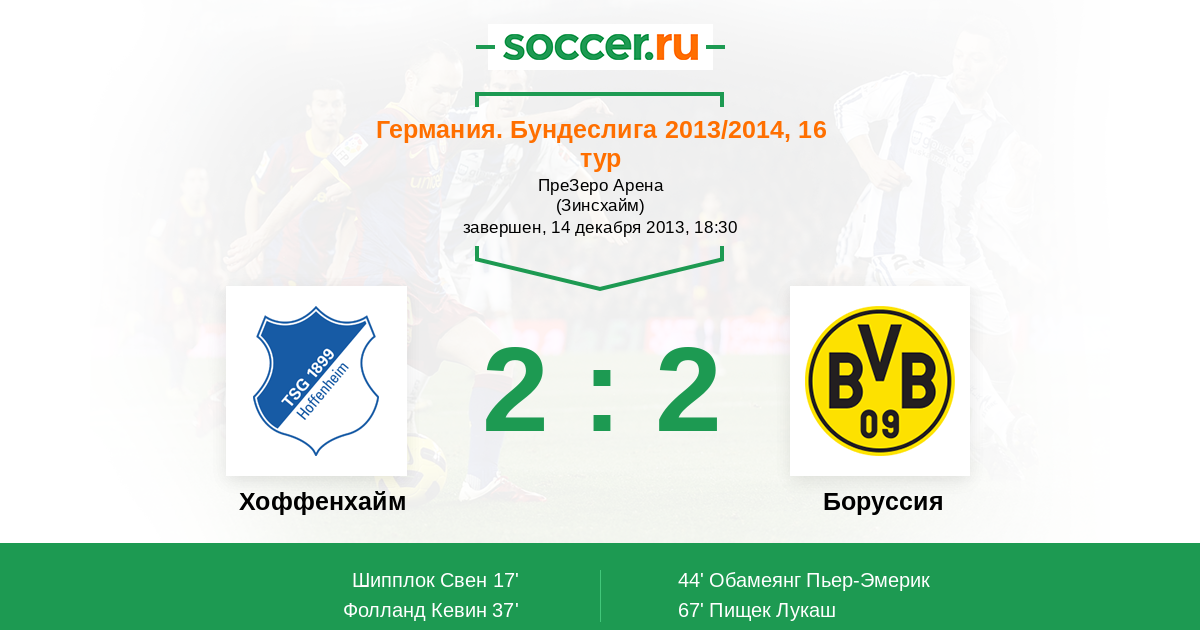 Протокол матча Хоффенхайм против Боруссия