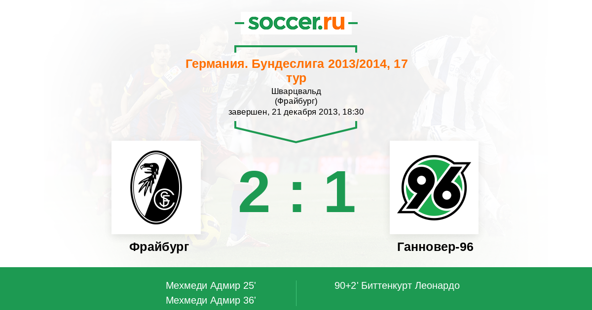 Протокол матча Фрайбург против Ганновер-96
