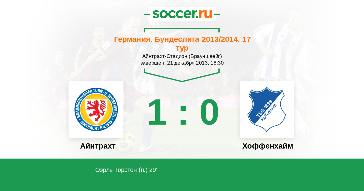 Протокол матча Айнтрахт против Хоффенхайм