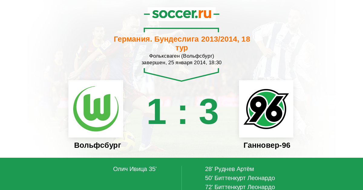 Протокол матча Вольфсбург против Ганновер-96