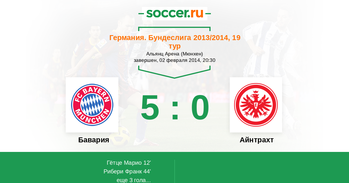 Протокол матча Бавария против Айнтрахт