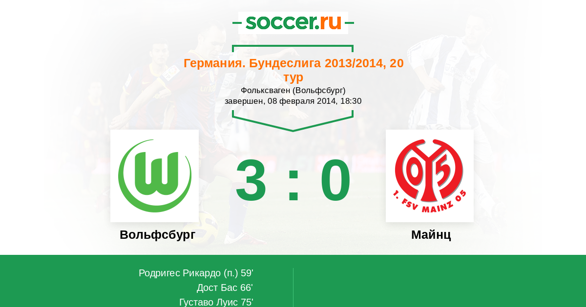 Протокол матча Вольфсбург против Майнц