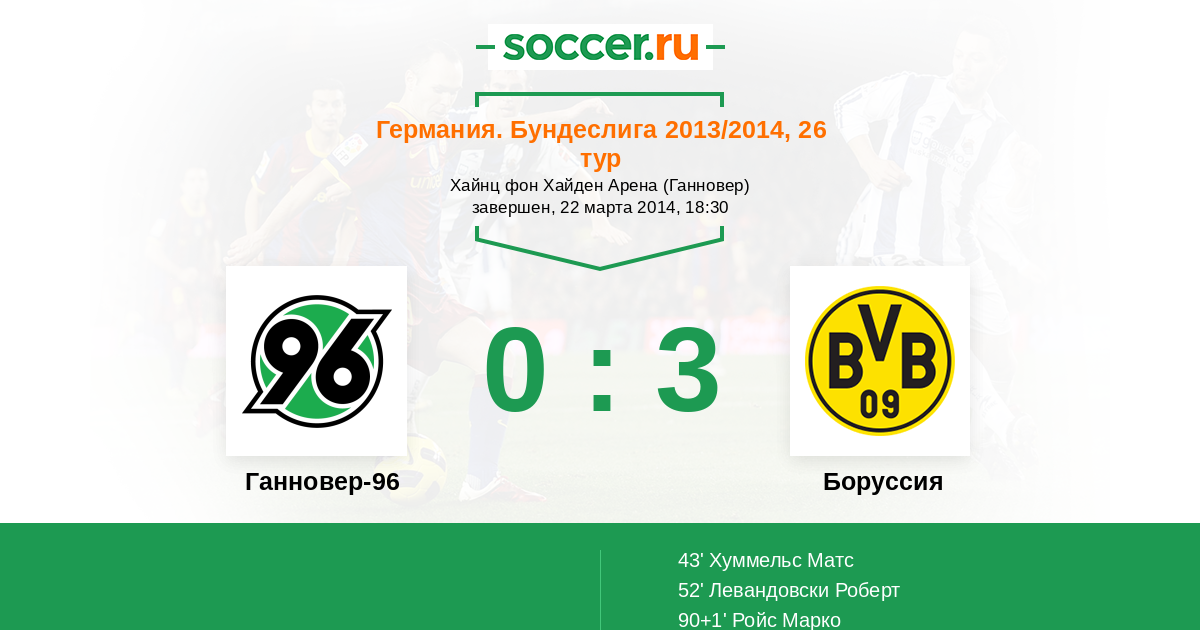 Протокол матча Ганновер-96 против Боруссия
