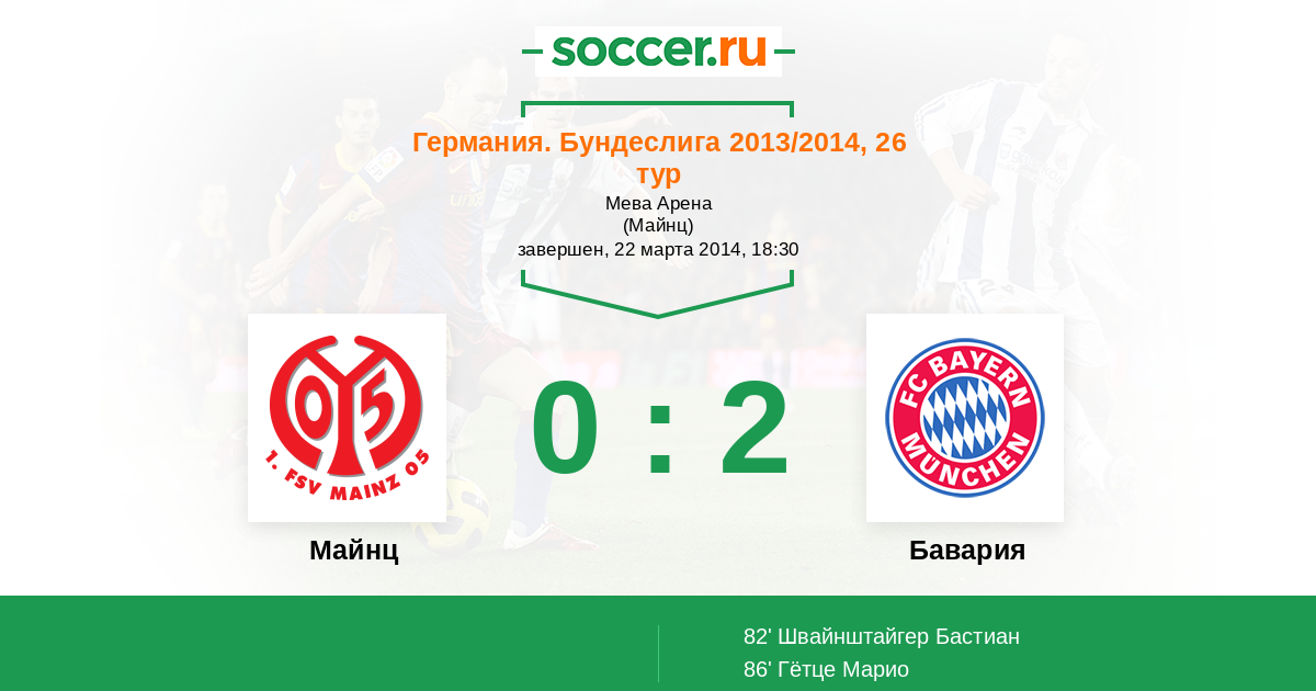 Протокол матча Майнц против Бавария