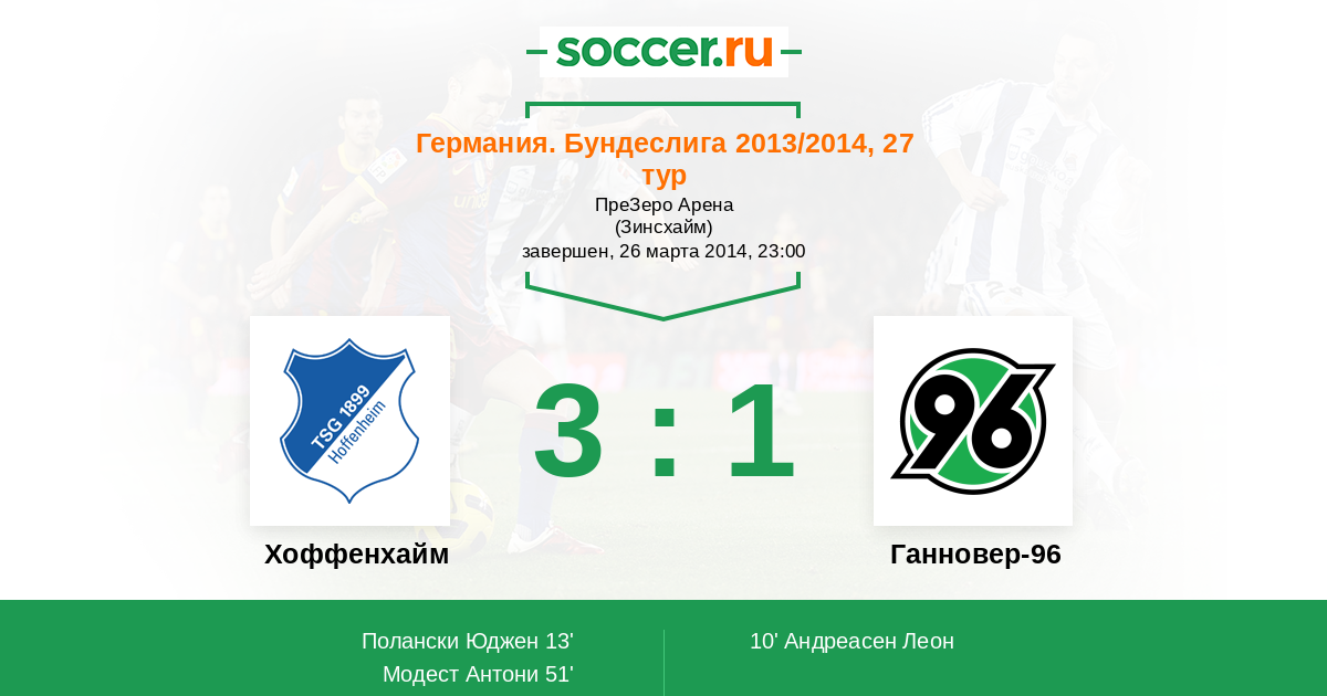 51' (2:1) Модест Антони (27) (Фирмино Роберто (10))