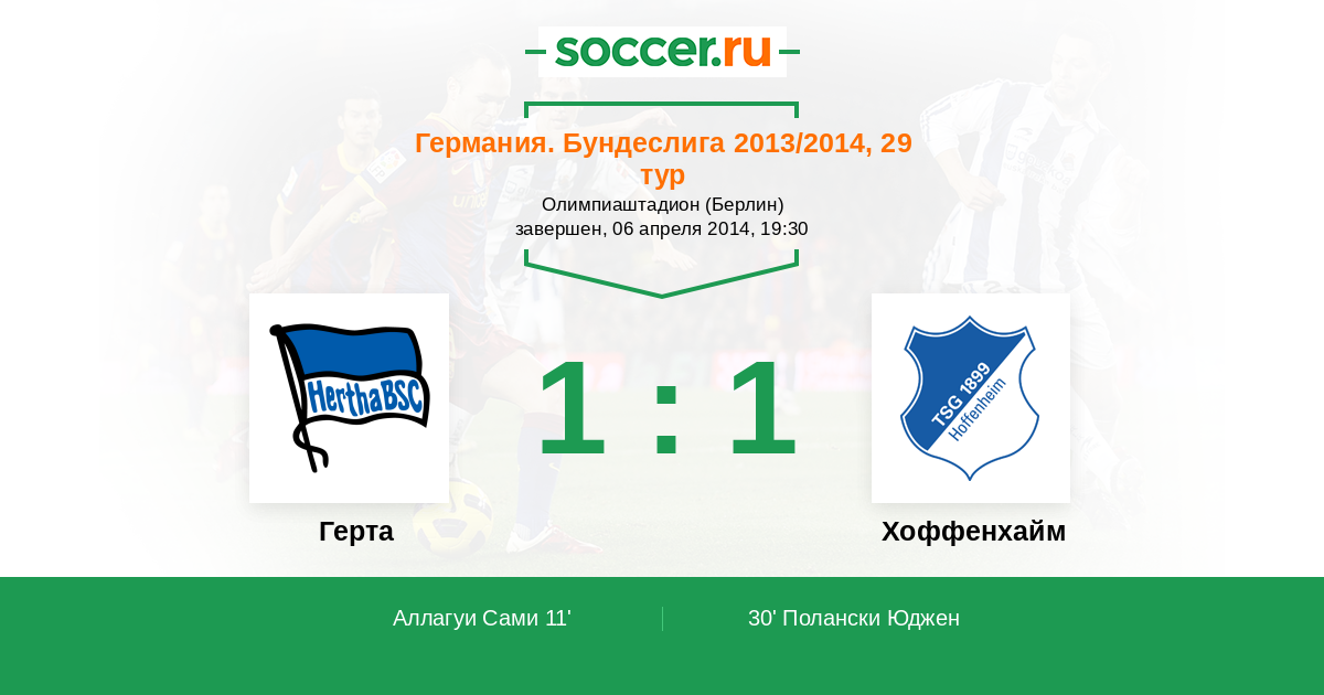 Протокол матча Герта против Хоффенхайм