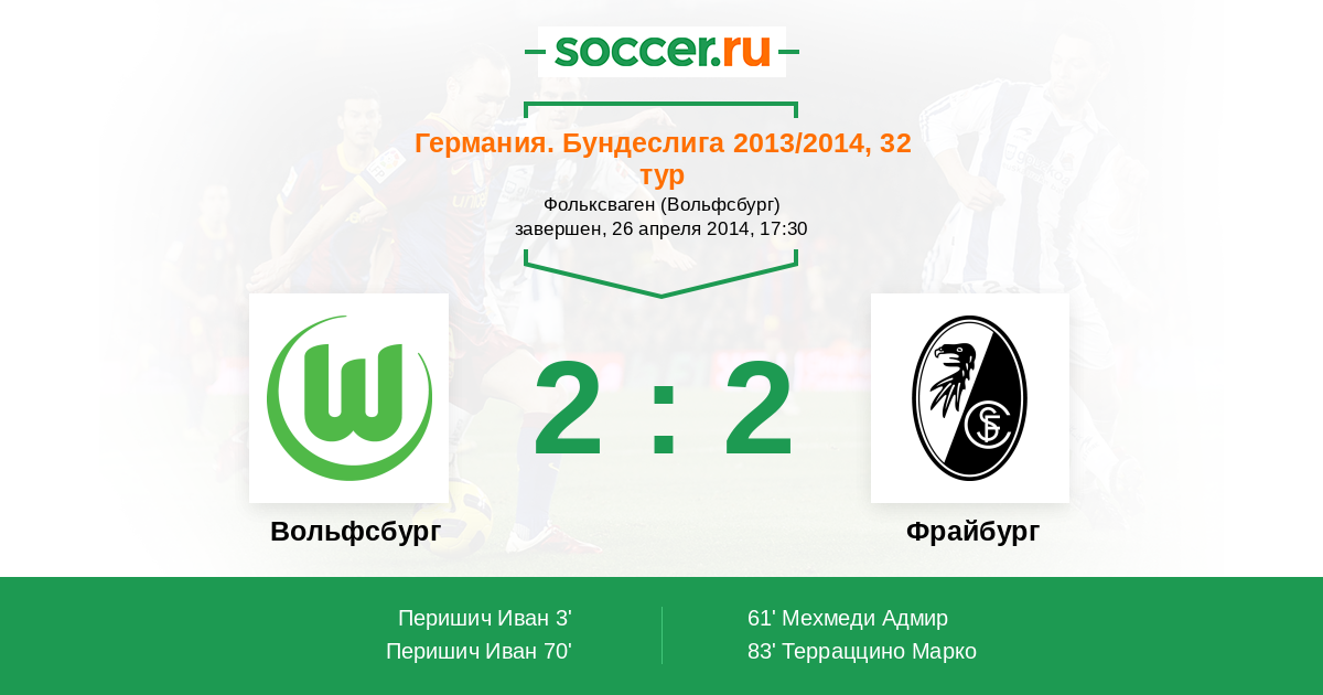Протокол матча Вольфсбург против Фрайбург