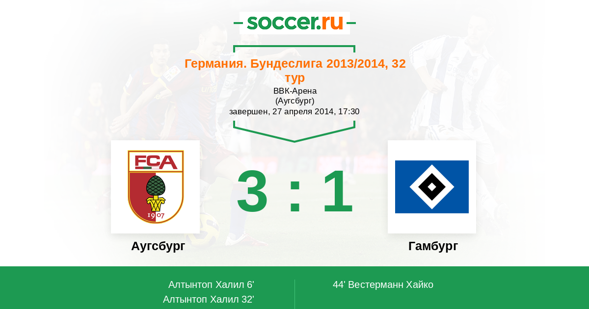 Протокол матча Аугсбург против Гамбург