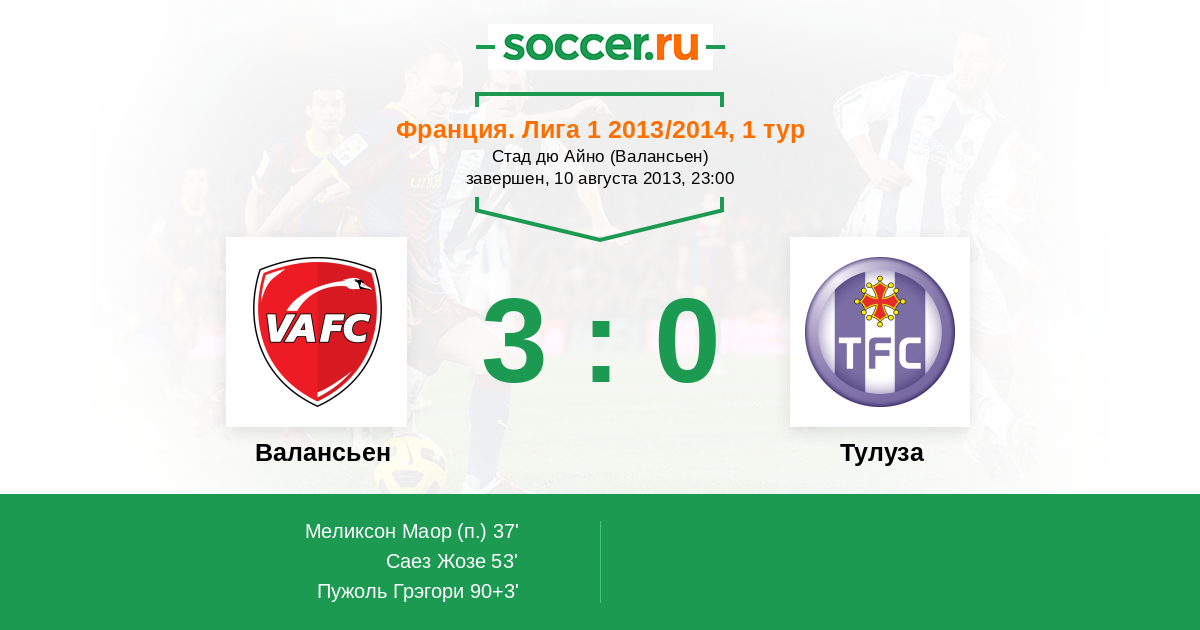 Протокол матча Валансьен против Тулуза