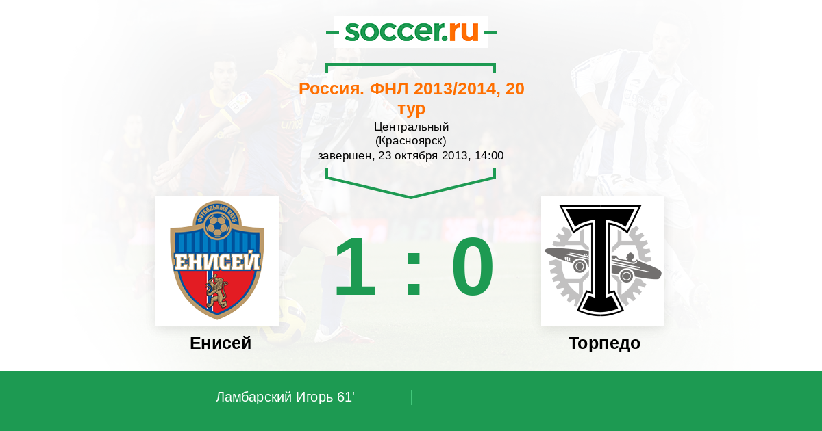 Протокол матча Енисей против Торпедо