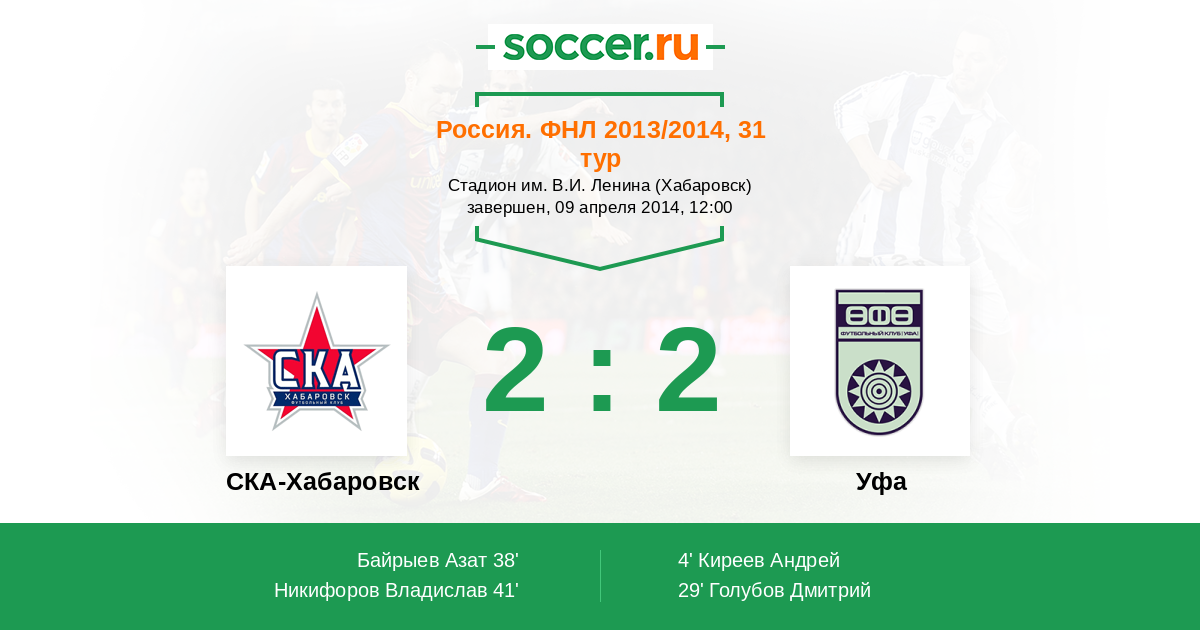 Протокол матча СКА-Энергия против Уфа