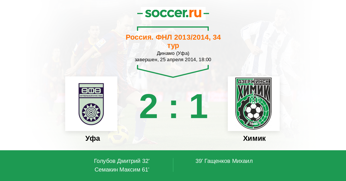 Протокол матча Уфа против Химик