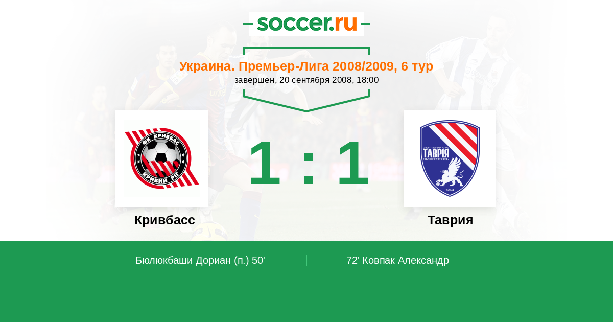 Протокол матча Кривбасс против Таврия