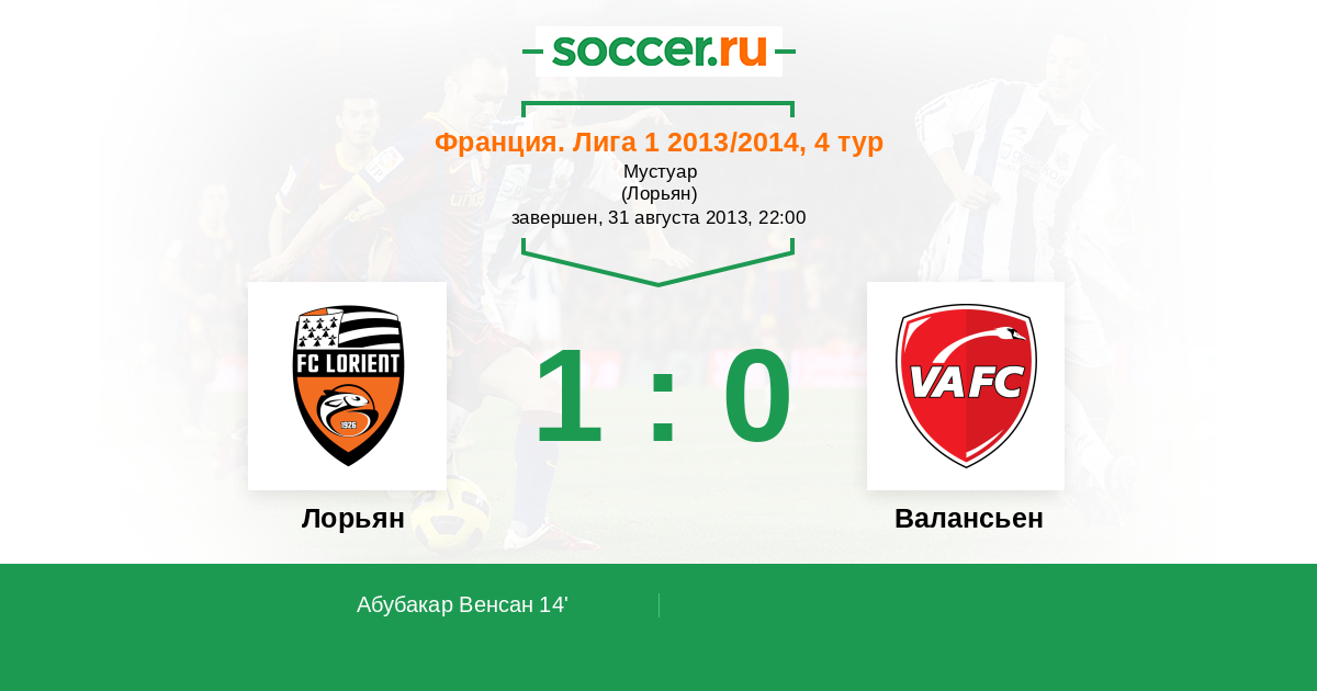 14' (1:0) Абубакар Венсан (9) (Жуффре Ян (8))