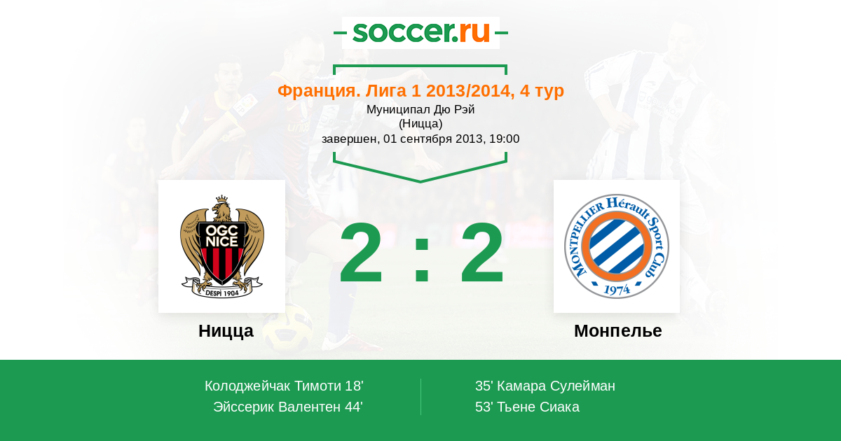 Протокол матча Ницца против Монпелье