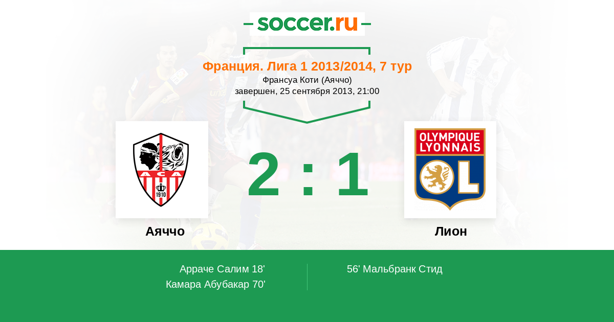 56' (1:1) Мальбранк Стид (17) (Ляказетт Александр (10))