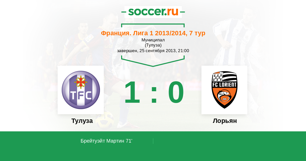 Протокол матча Тулуза против Лорьян