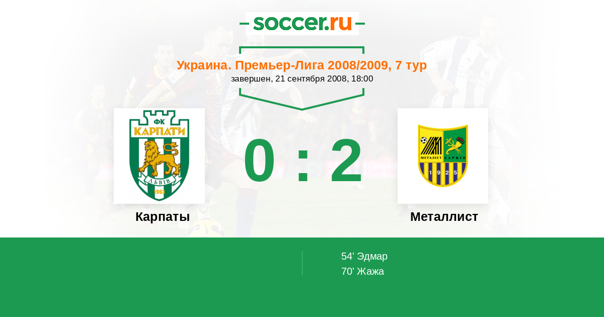 Протокол матча Карпаты против Металлист