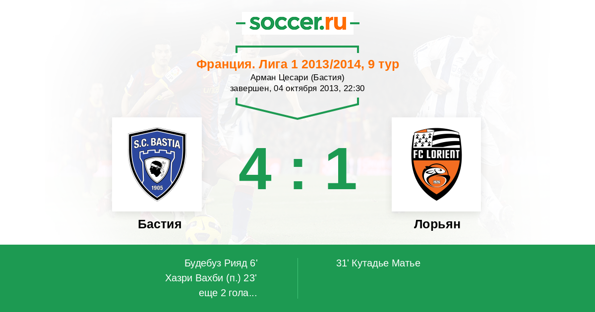 6' (1:0) Будебуз Рияд (13) (Бруно Джанни (9))