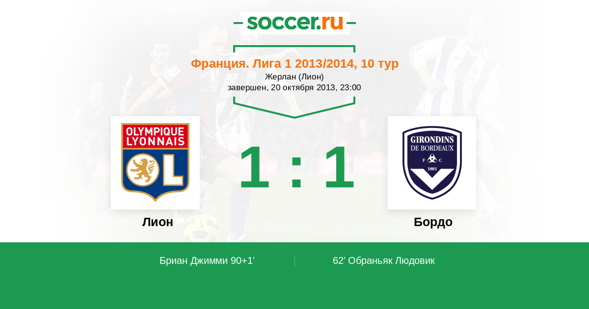 Протокол матча Лион против Бордо