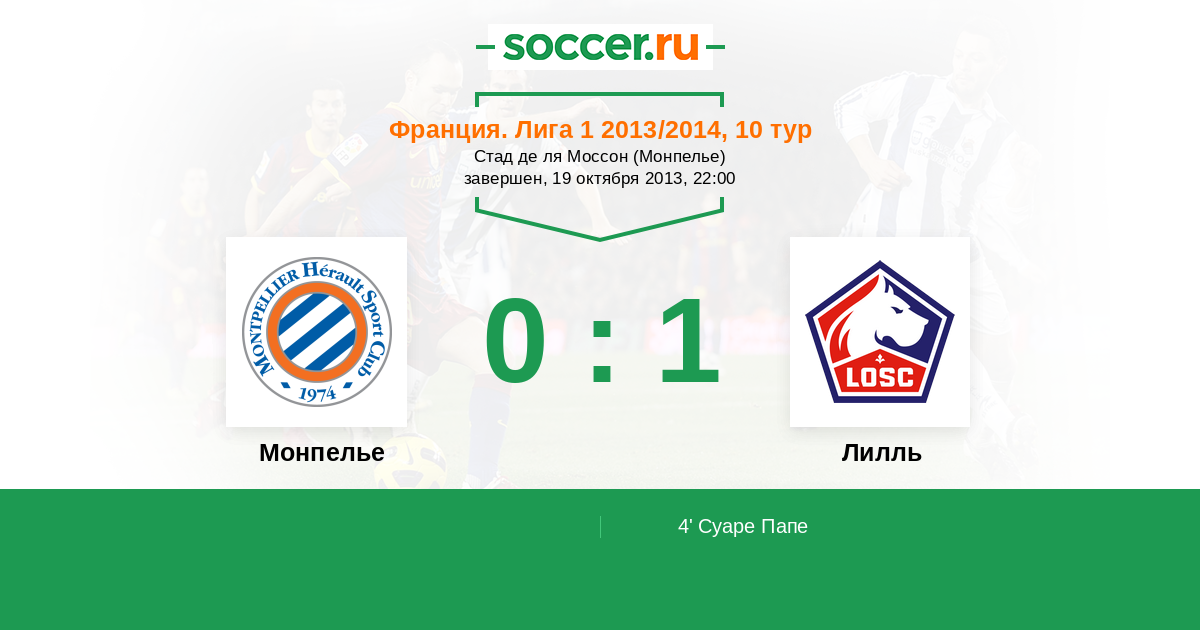 4' (0:1) Суаре Папе (23) (Бальмон Флоран (4))