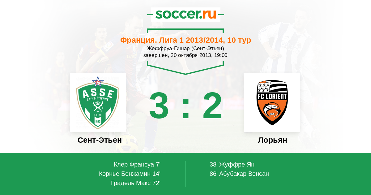 Протокол матча Сент-Этьен против Лорьян