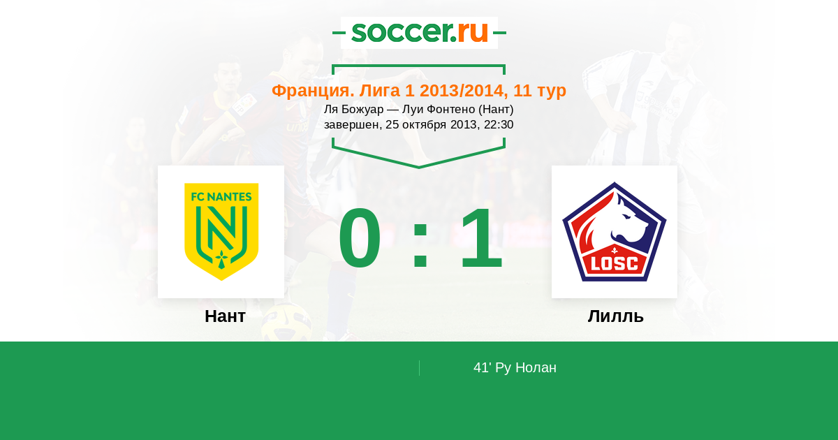 41' (0:1) Ру Нолан (26) (Роделен Ронни (20))