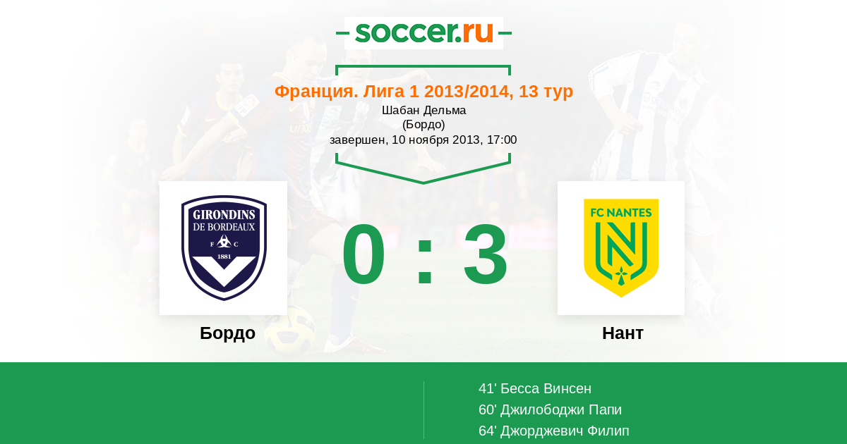 Протокол матча Бордо против Нант