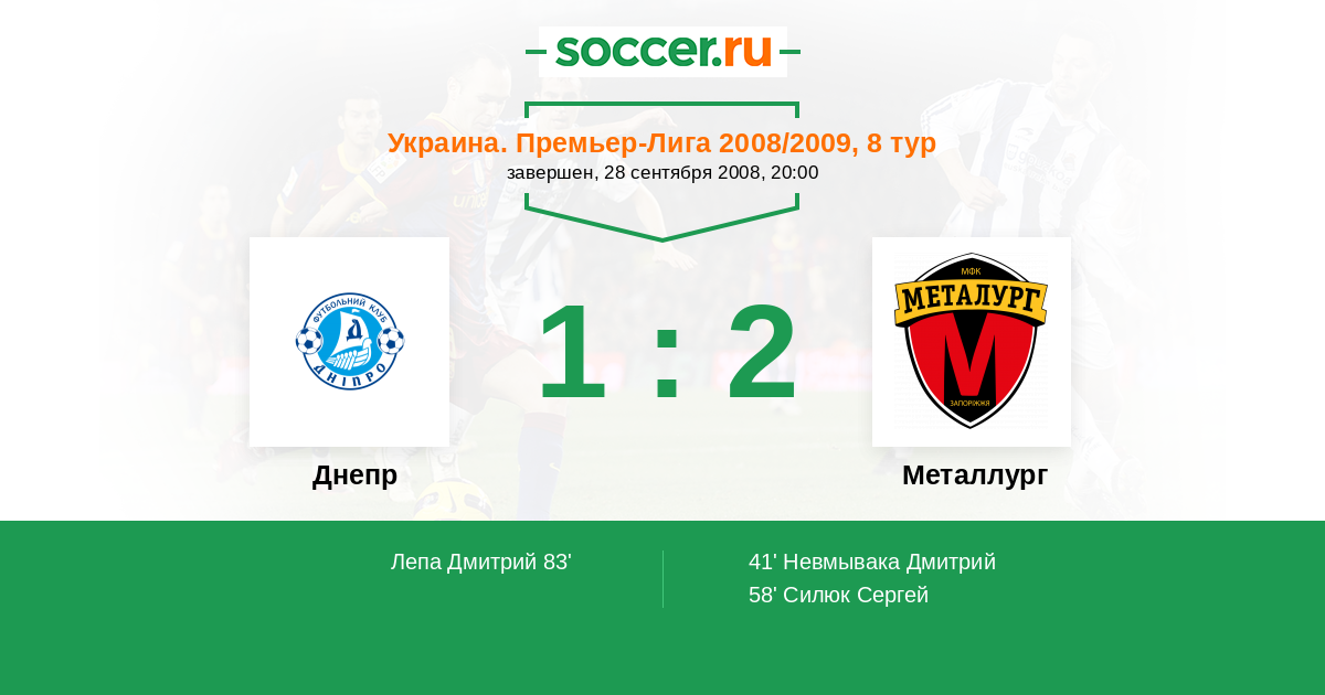 Протокол матча Днепр против Металлург