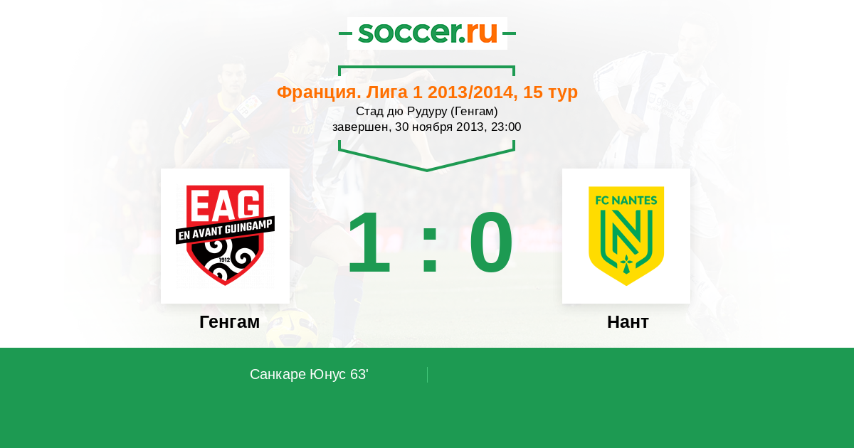 Протокол матча Генгам против Нант