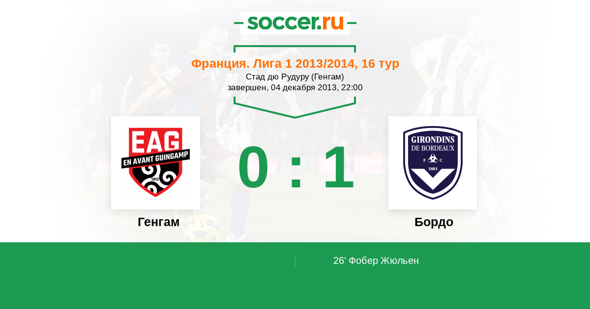 Протокол матча Генгам против Бордо