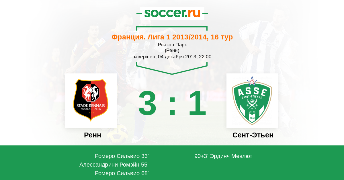 Протокол матча Ренн против Сент-Этьен