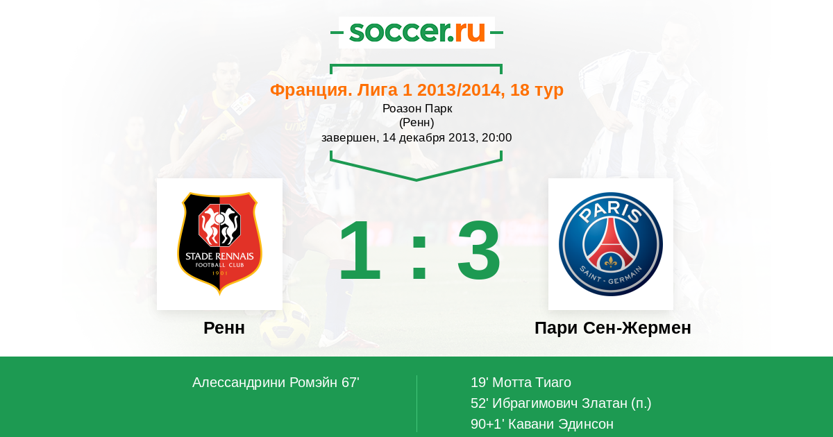 Протокол матча Ренн против Пари Сен-Жермен