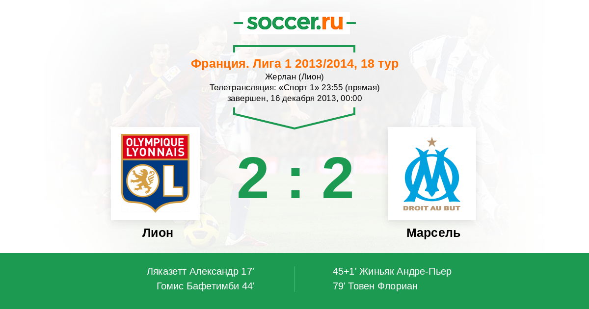 17' (1:0) Ляказетт Александр (10) (Гуркюфф Йоанн (8))
