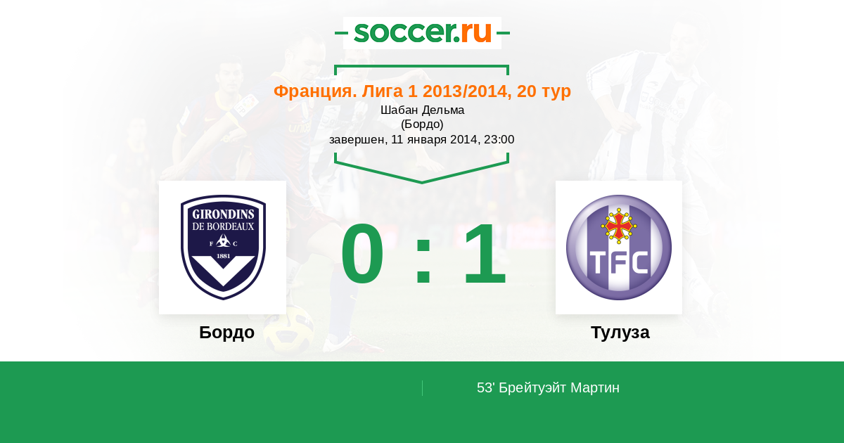 Протокол матча Бордо против Тулуза
