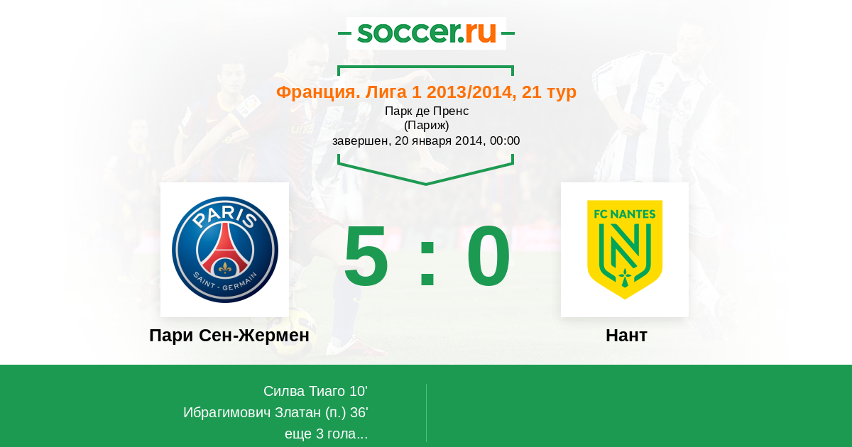 Протокол матча Пари Сен-Жермен против Нант