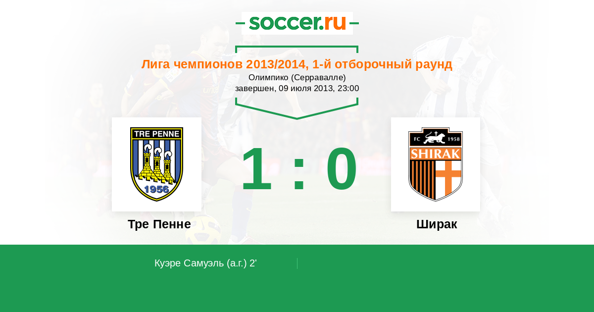 2' (1:0) Автогол Куэре Самуэль (13)