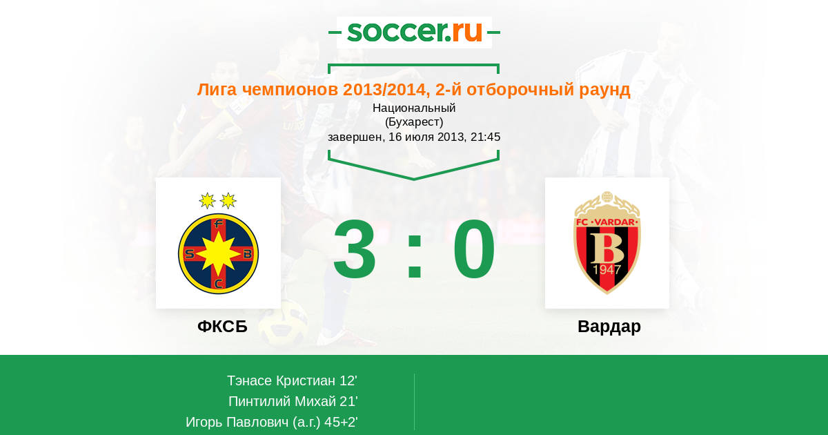 45+2' (3:0) Автогол Игорь Павлович (1)