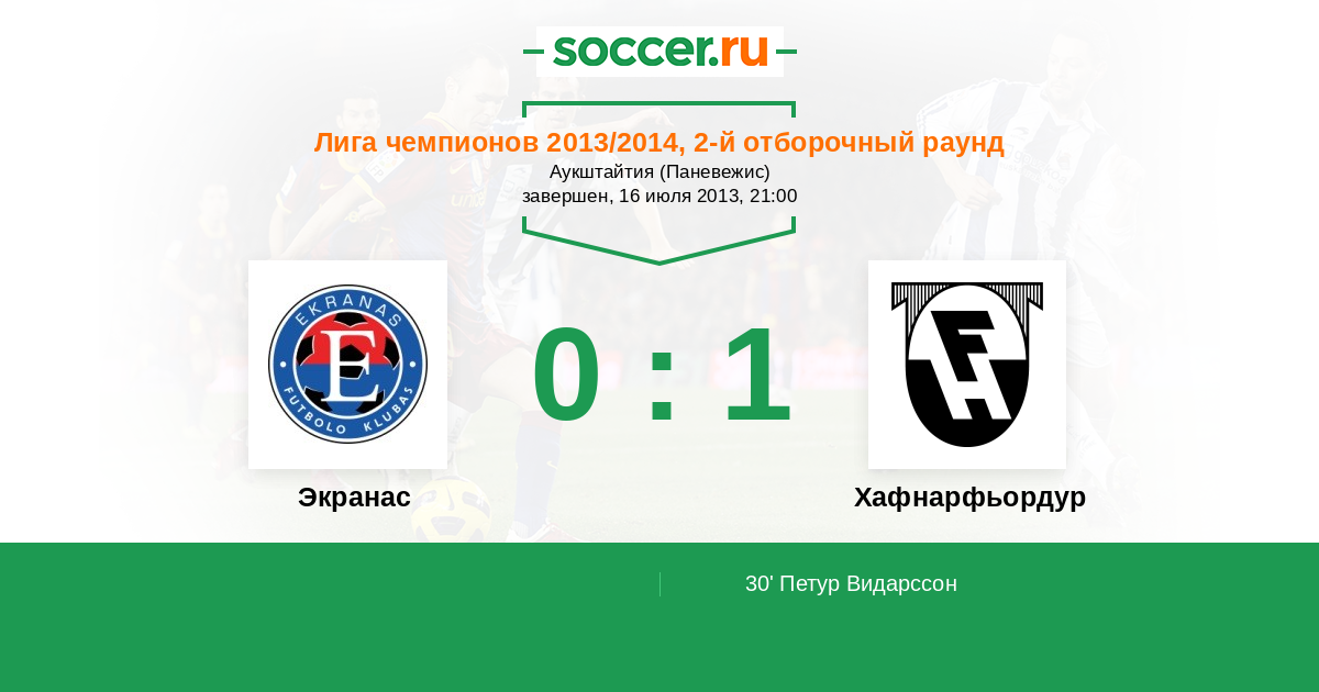 Протокол матча Экранас против Хафнарфьордур