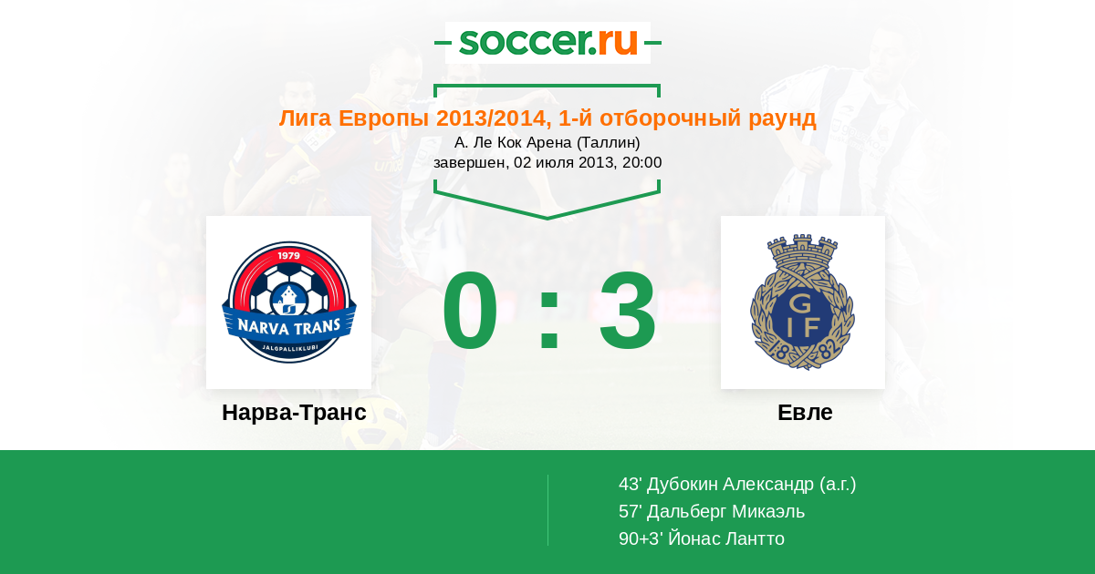 Протокол матча Нарва-Транс против Евле
