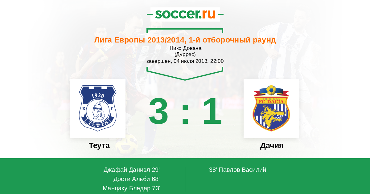 Протокол матча Теута против Дачия