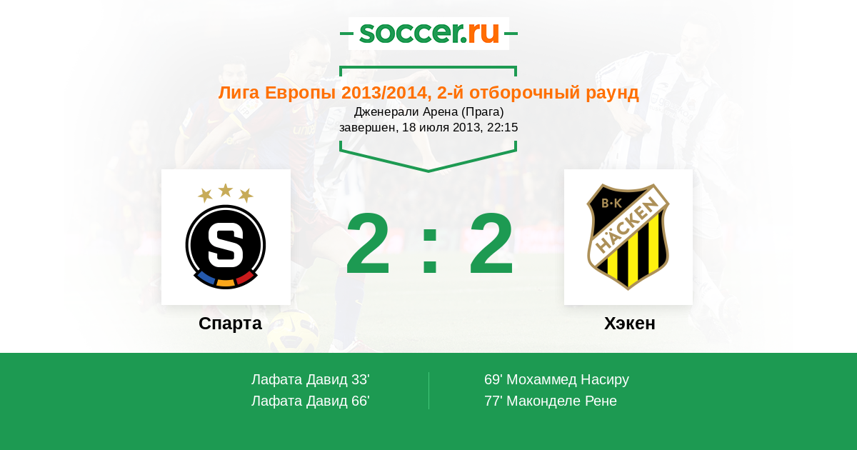 Протокол матча Спарта против Хэкен