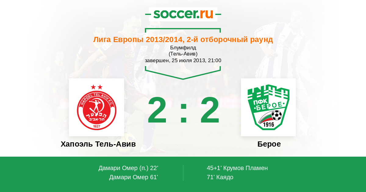 Протокол матча Хапоэль Тель-Авив против Берое