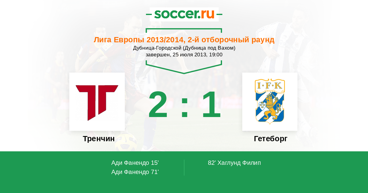 Протокол матча Тренчин против Гетеборг