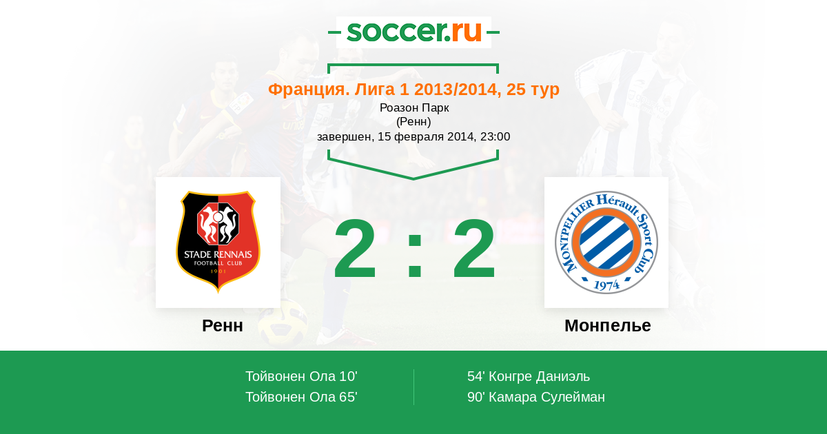 65' (2:1) Тойвонен Ола (9) (Алессандрини Ромэйн (19))