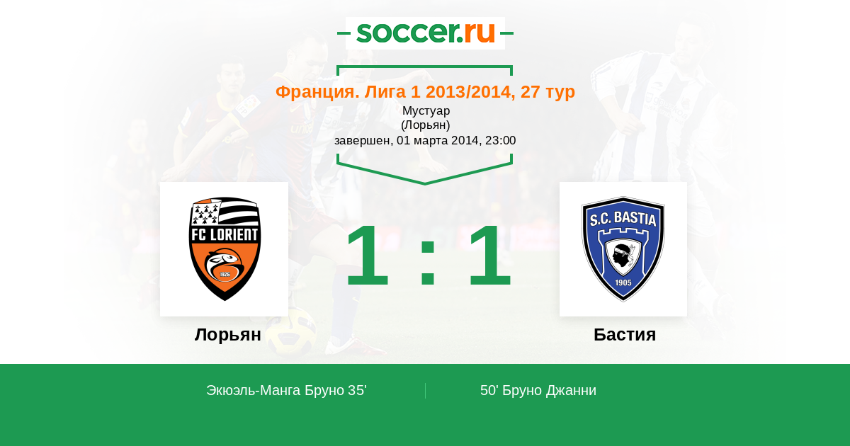 Протокол матча Лорьян против Бастия